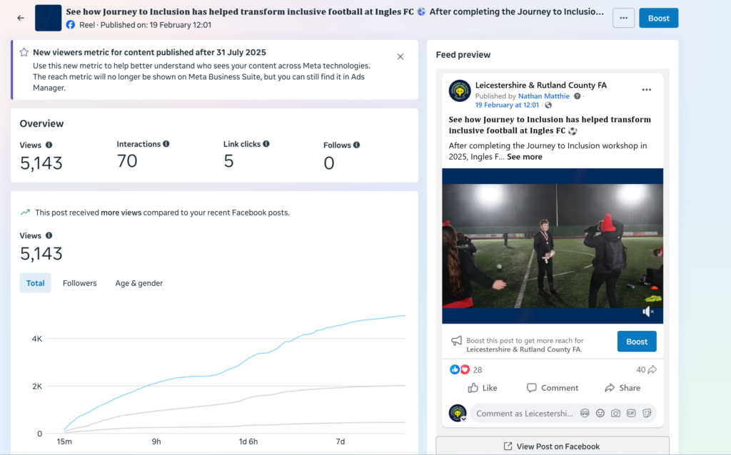 The film received more than 8,000 combined views across Facebook, Instagram, X, YouTube and LinkedIn, helping reach a wide audience across the football community.